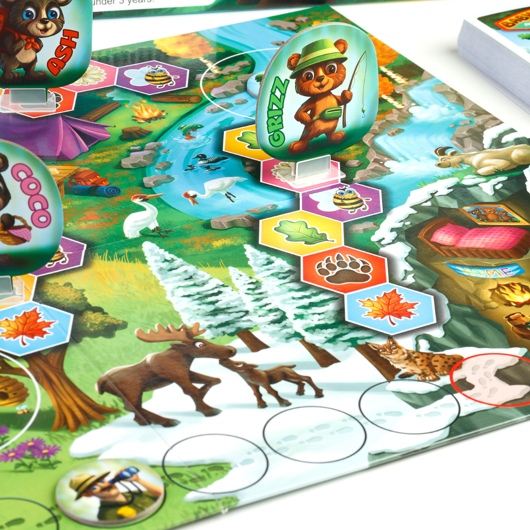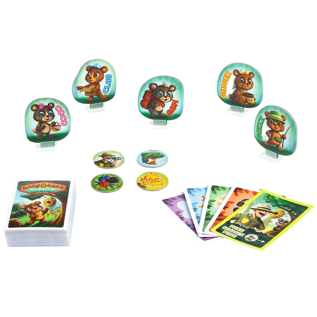 - Includes 1 game board, 5 bear tokens, 3 snack tokens, 1 park ranger token, 61 cards